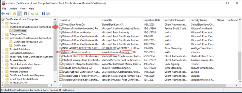 Go to the “Trusted Root Certification Authorities” and then “Certificates”, you will see the root certificate.