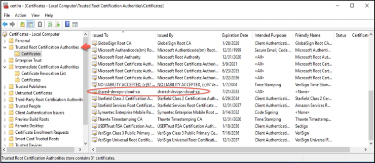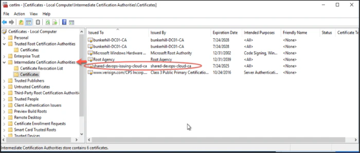 Go to the “Trusted Root Certification Authorities” and then “Certificates”, you will see the root certificate.