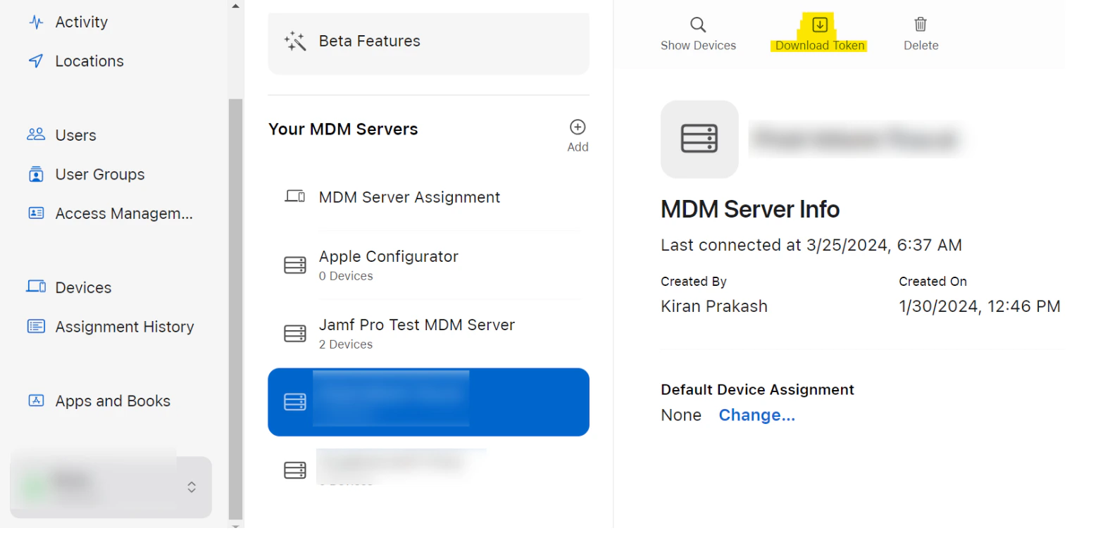 - Add MDM server and download server token