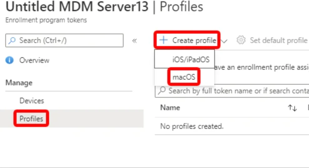 - Select Profiles > Create profile > macOS