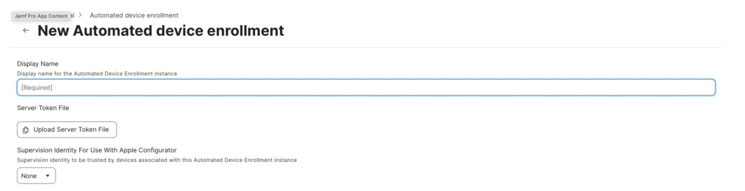 Step 1: Sign into your Jamf Pro account https://DOMAIN.jamfcloud.com Step 2: Go to “Settings”, then navigate to the “Automated device enrollment” to create a new MDM server integration