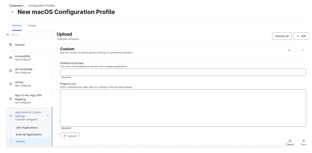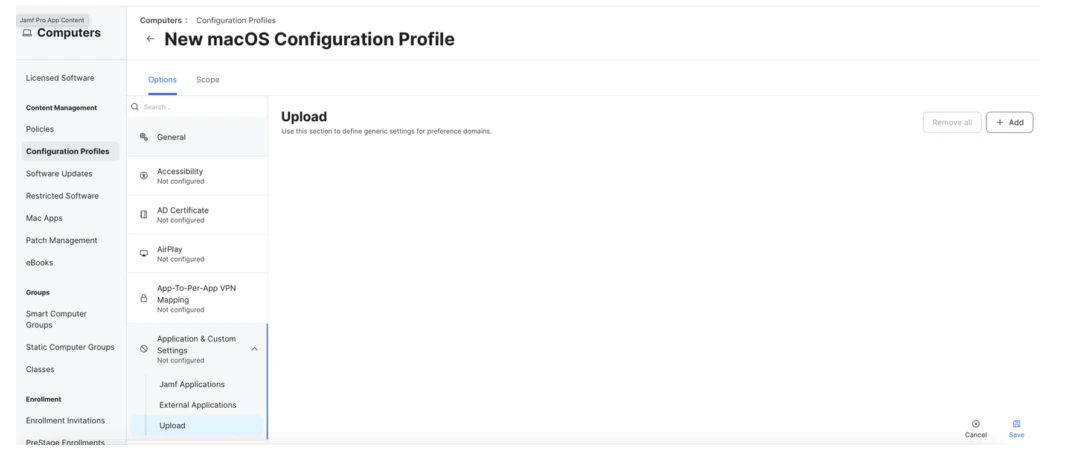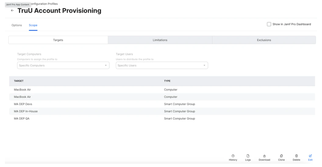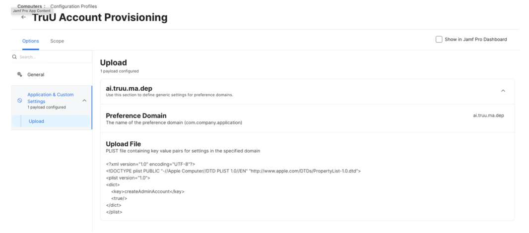 - Create Preference Domain for ai.truu.ma.dep with the following PLIST: