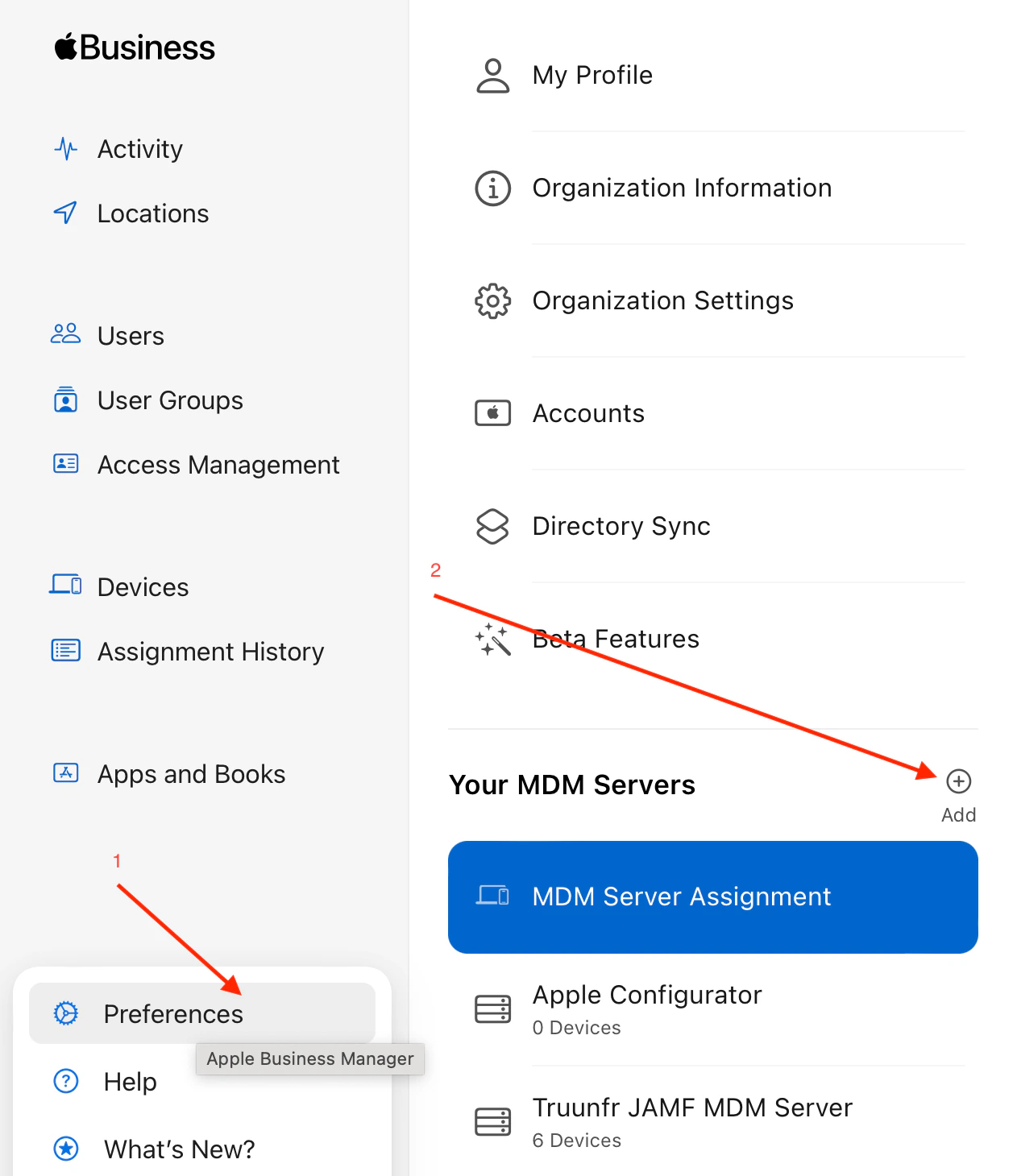- Go to Preferences to add new MDM Server