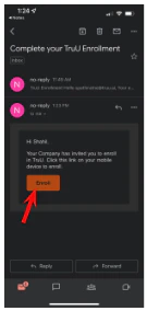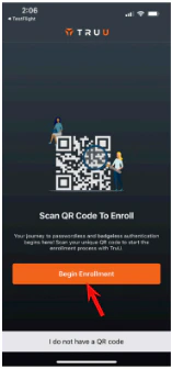 - On your phone, open the “TruU Mobile App” and click Begin Enrollment