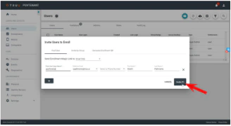 - Click on Users in the left hand panel. Then, click the blue mail icon on the top of the page