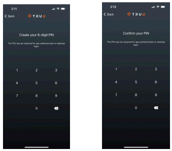 - Create a 6-digit TruU PIN then confirm the PIN for the TruU App