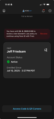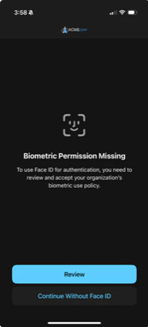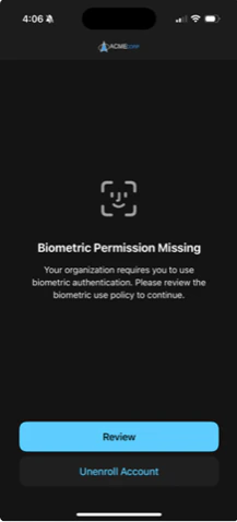If the policy is rejected on another device, or if the renewal period expires, users will see a notification that their biometrics have been removed.