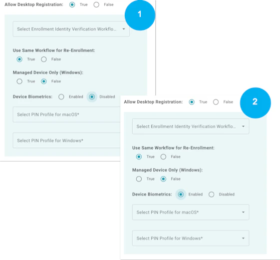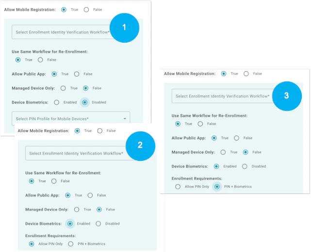 - When “Device Biometrics” is enabled AND “PIN+Biometrics” are set as required, users must enroll their biometrics.
