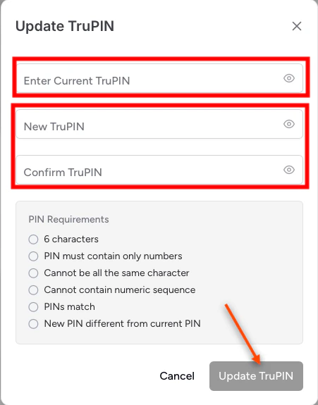 - Follow the instructions to update/change your TruPIN. Then, click Update TruPIN