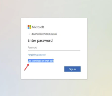 - Choose the Sign in with a certificate option