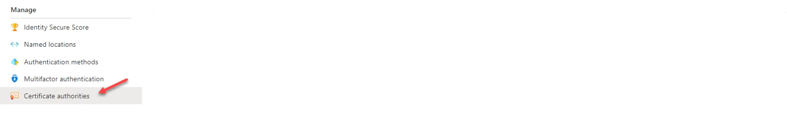 - Under Manage, find and click on Authentication methods and then Certificate-based Authentication