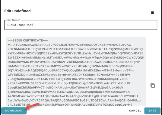 - Subsequently, click on the Cloud Trust Root entry and download the “cloud_ca_root.pem” file