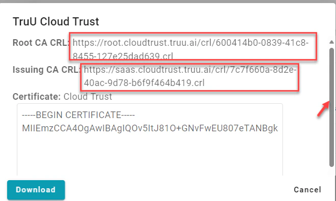 Configure TruU Cloud Trust and obtain certs and CRL information