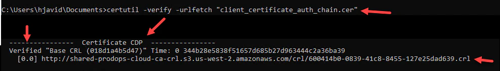 During the command’s output, one should examine the Certificate Distribution Point (CDP) section. A status of “Verified” indicates proper communication with the CRL. Conversely, a “Failed” status suggests that there may be an issue, such as the need to consult with the firewall team to ensure that the domain controller’s internet ports are open to reach the CRL