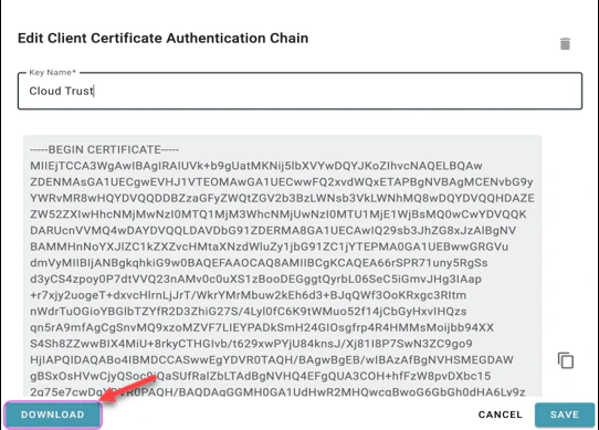 - Firstly, access the Cloud Trust entry to download the “client_certificate_auth_chain.pem” file