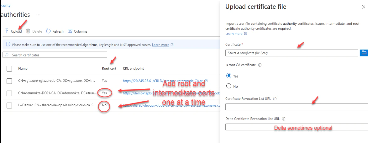 - Ensuring the certificate authority (CA) has an Internet-facing URL with a publicly accessible Certificate Revocation List (CRL)
