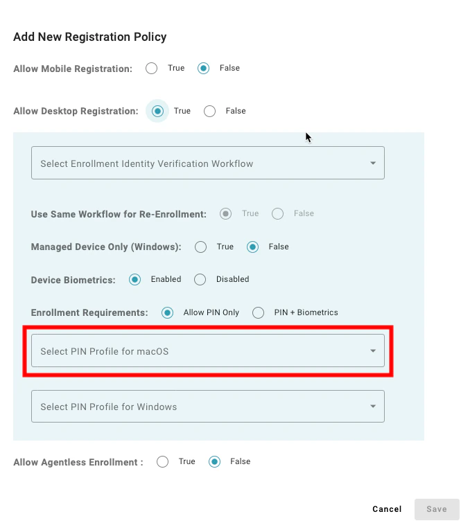 Select PIN Profile for macOS: