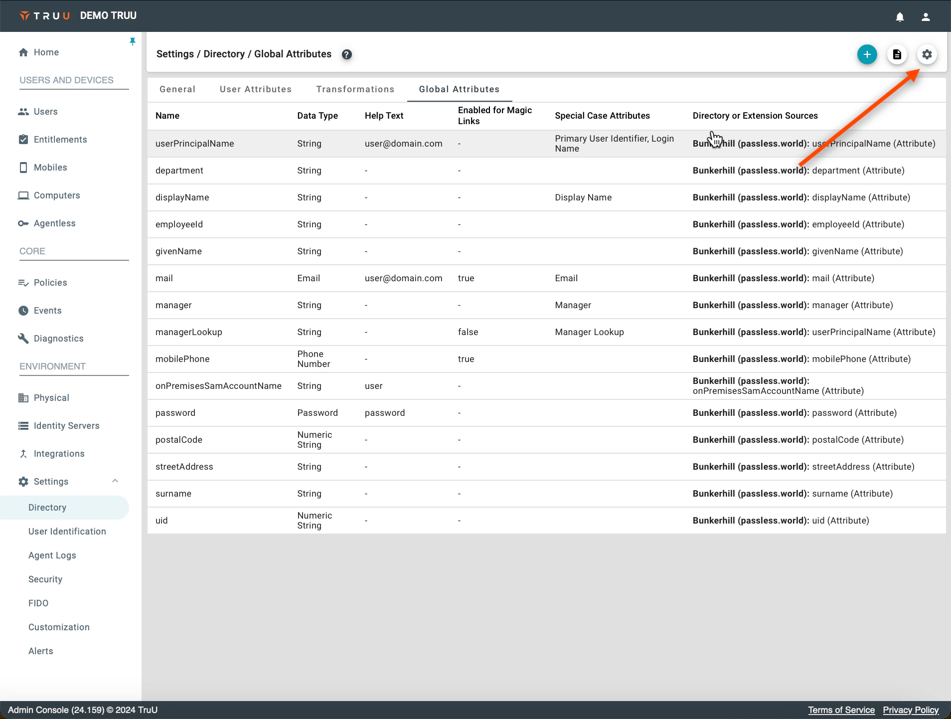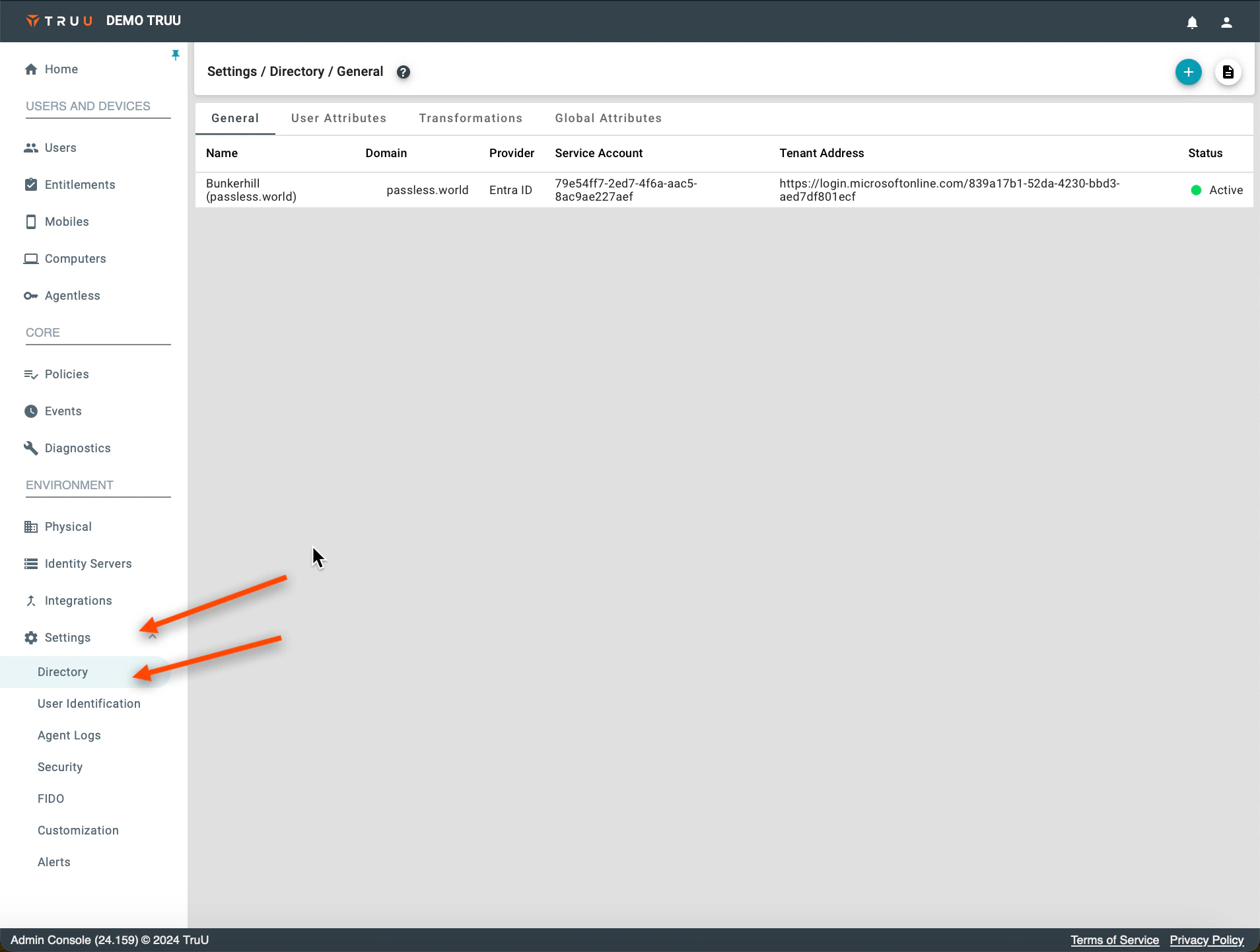 - Navigate to the “Setting” tab, then the “Directory” drop down on the TruU Admin Console