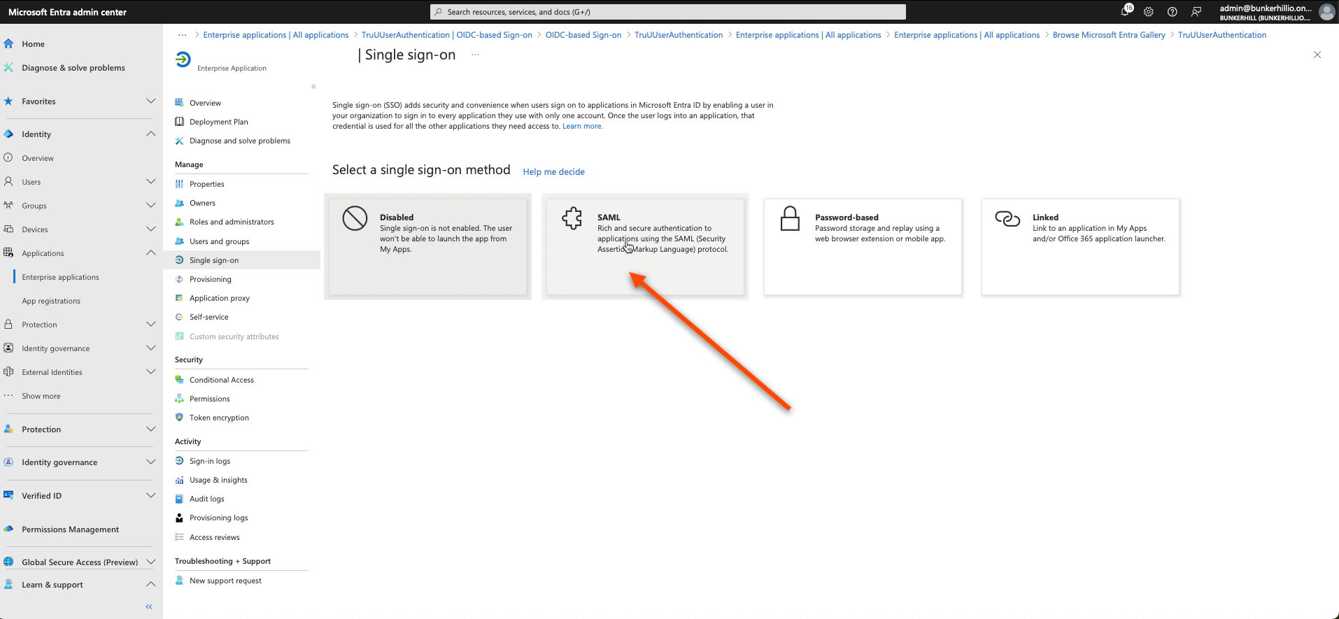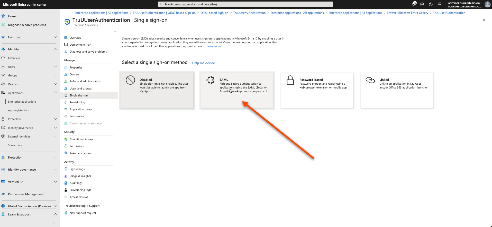 - Select Single Sign-on
