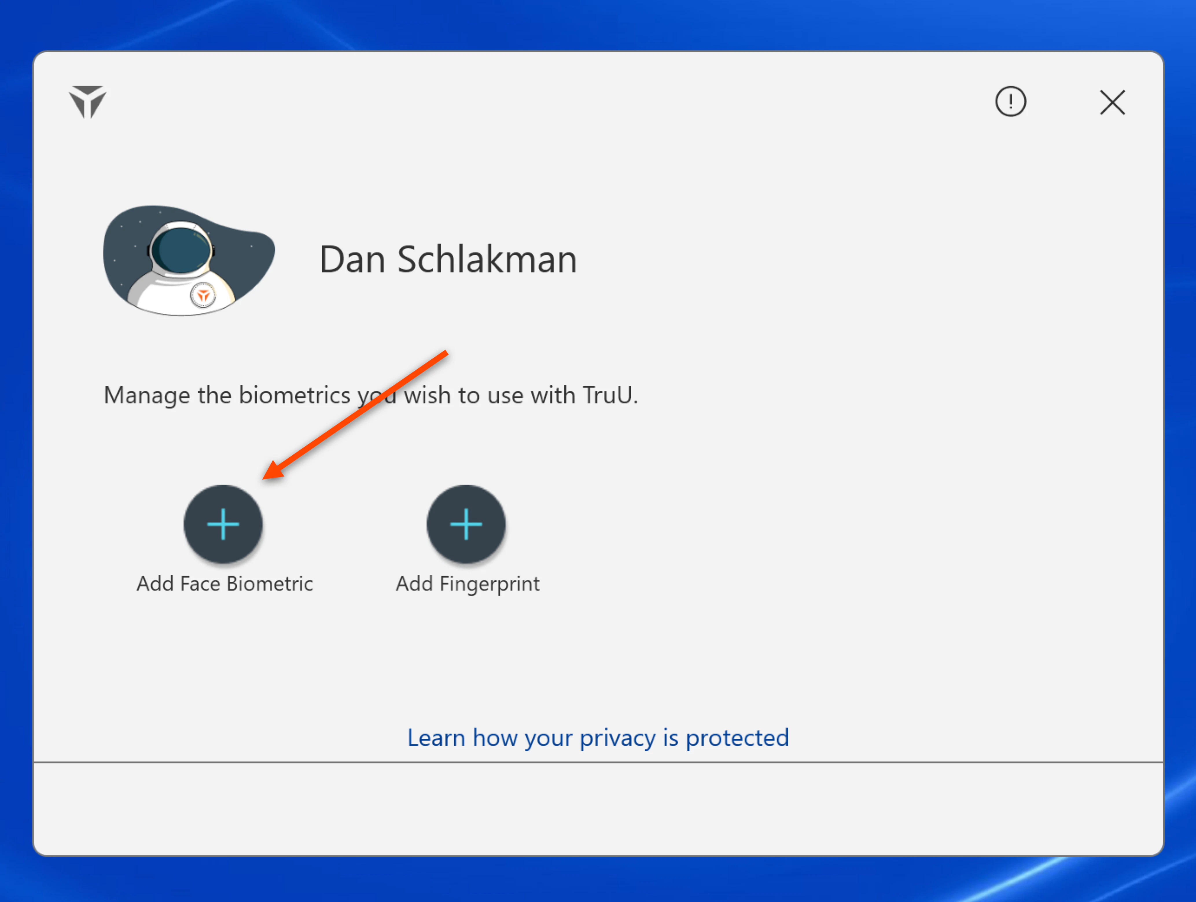 - Next, click on Add Face Biometrics