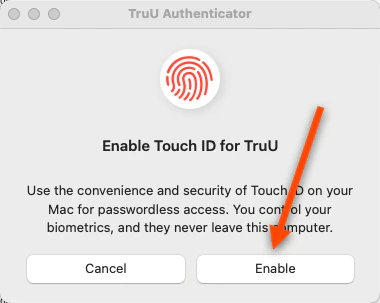 - You will then be able to login/authenticate to TruU using your fingerprint