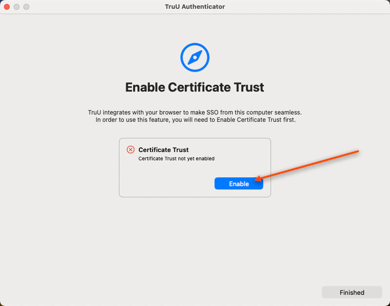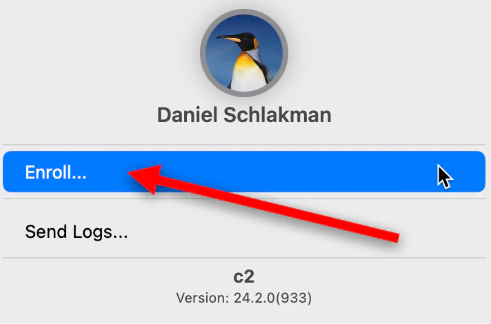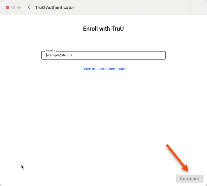 - On your Mac, Click on the TruU icon on the top right of the Menu Bar (If TruU icon is not appearing and enrollment menu is not appearing, run the following command in terminal: