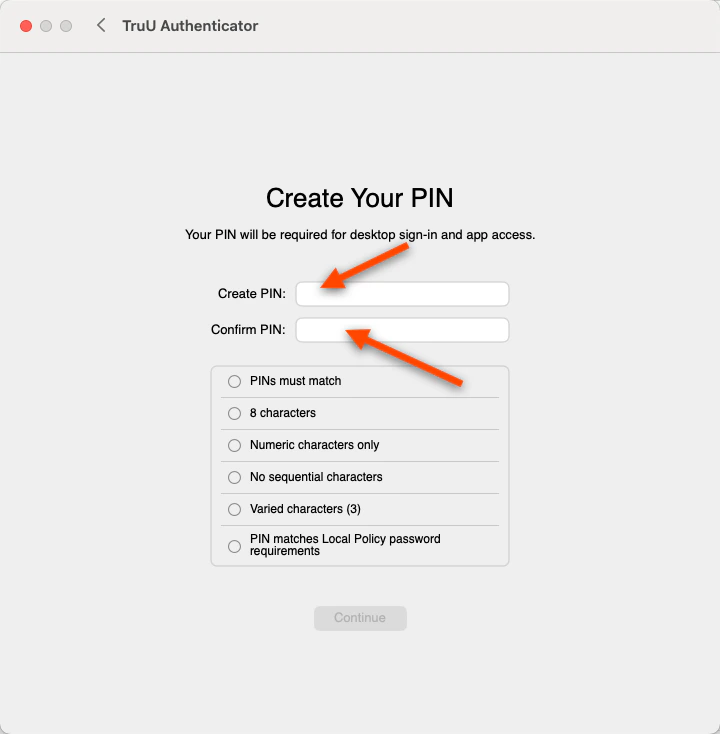 - Create and Confirm your TruU PIN and Click the Blue arrow to continue