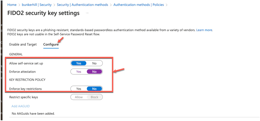 If FIDO2 Security Keys are already enabled Configure FIDO2 security key settings.