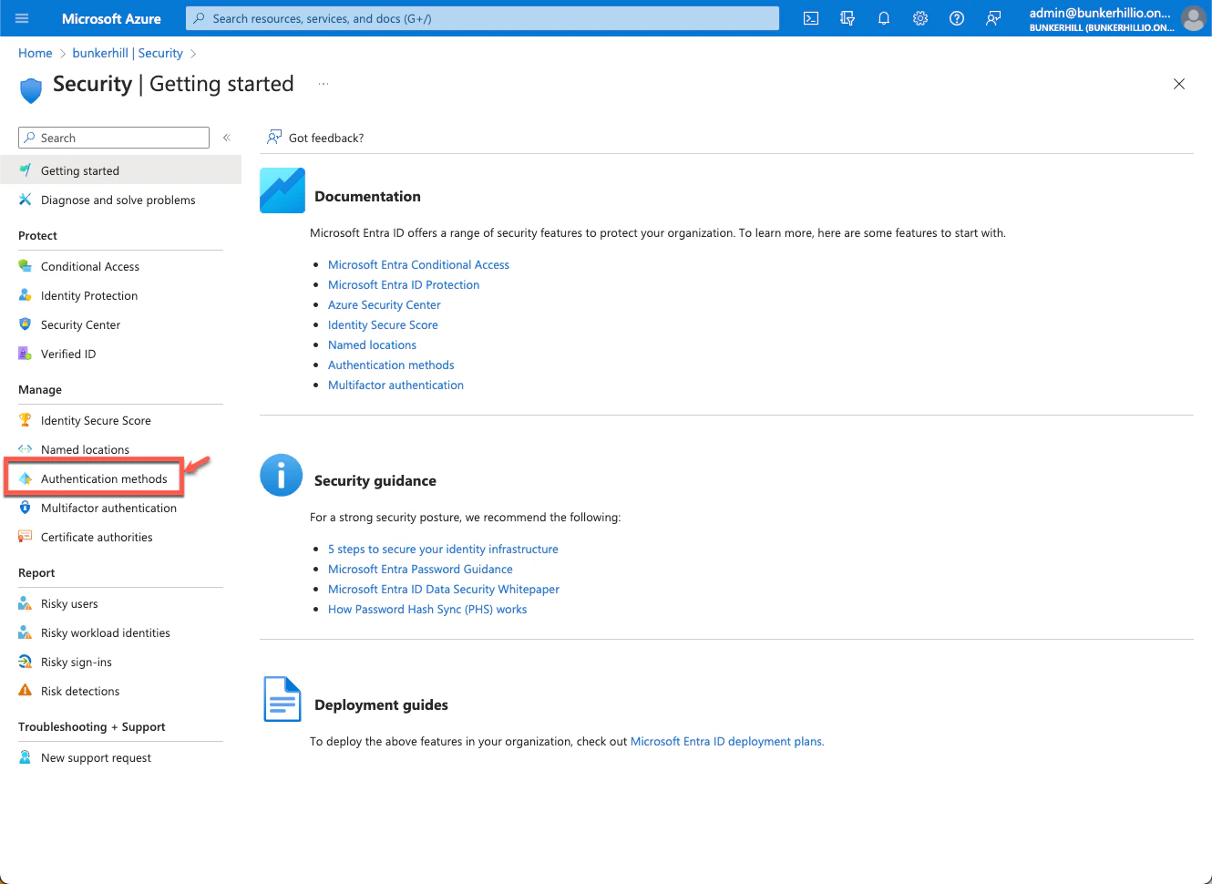 - Go to “Security”, then navigate to “Authentication Methods”