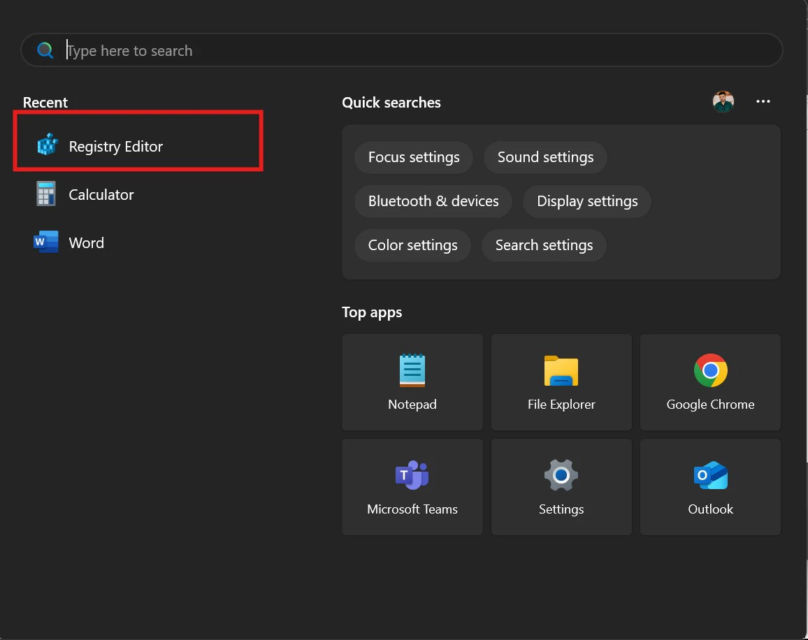 - Launch the Registry Editor on your system