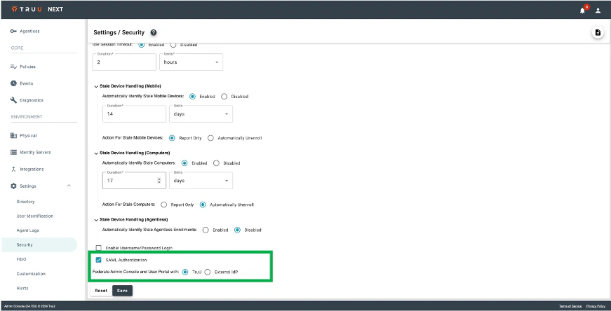 - With this release, we have added an option to federate the TruU web apps (Admin Console and User Portal) to TruU without using an external IdP. For existing customers, this can be enabled from the “Security” menu in “Settings”. This will automatically be configured for new tenants created going forward.