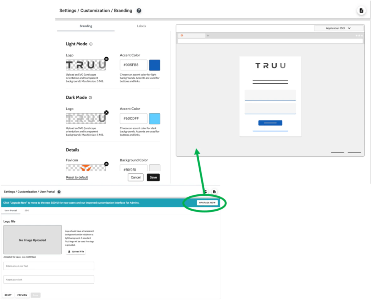 - While we are very excited about the new designs for the SSO screens and the improved user experience, we understand that customers want to control when changes are experienced by their end users. For that reason, we have gated these changes behind our improved and more streamlined Customization pages in the Admin Console. In the Admin Console you will see an “Upgrade Now” banner in the Settings > Customization menu. (Note: this banner / button will appear after Identity Servers are upgraded to 24.170.) When you click this button the following things will happen: