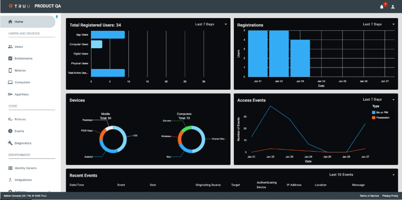- Identity Servers: Most customers are using TruU-managed Identity Servers. For customers with on-prem Identity Servers, they can still be managed by going to Environment>Identity Servers.