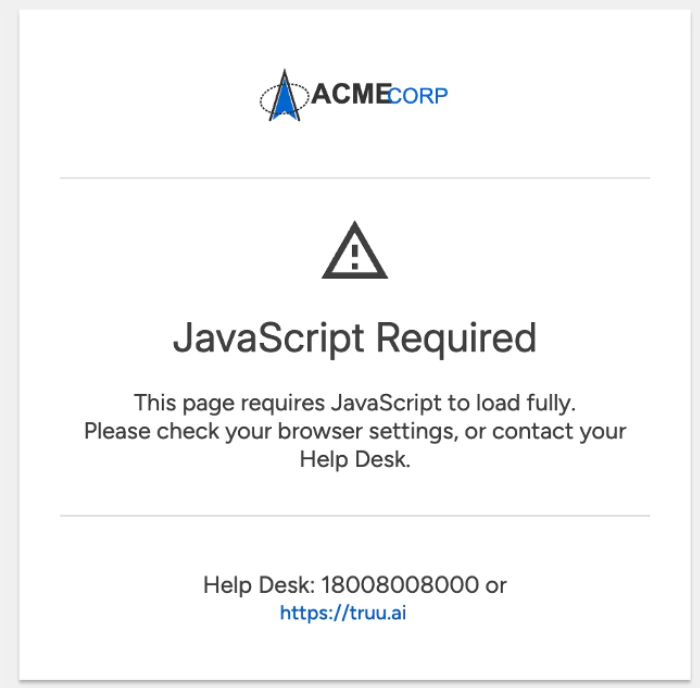 We recently had an issue where a customer’s DLP software was blocking JavaScript on our authentication pages preventing users from being able to authenticate. When this happened, the user was stuck on a blank page and the user and the customer were unable to identify the issue. After seeing this, we realized we could improve our error handling to communicate this problem to the user so that they or their IT team could resolve the issue.