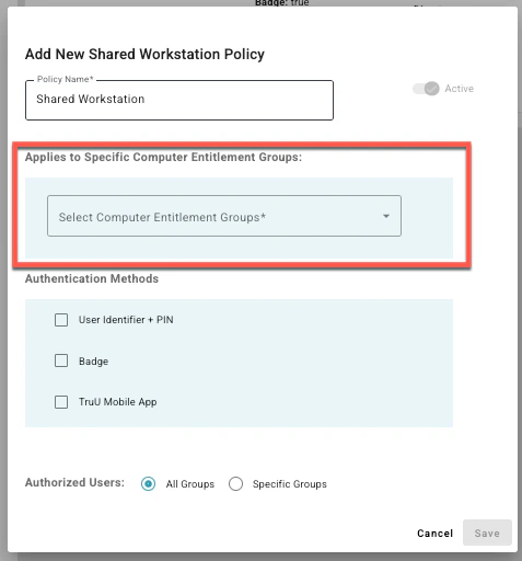 Set which entitlement group the shared workstation policy applies to. (Entitlement Group created here)