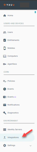 Step 1: Log into the TruU Admin Console and navigate to the “Integrations” tab.