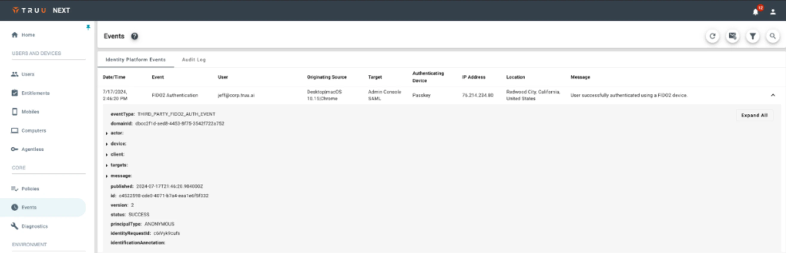 - Client: this is a new data object that represents the client (TruU Agent, App or browser) used by the actor (and expands to provide additional information about the client).