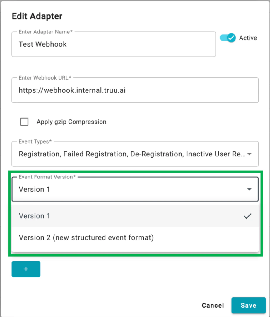 Step 1: To edit an existing TruU S3 Event Logging Adapter in your TruU Admin Console, click on the adapter instance. You’re then able to edit the adapter name, edit S3 bucket name, update S2 access key, update S3 access secret, and/or toggle the adapter from Active to Inactive. The adapter Version, when the adapter was Last Heard From, and the Date Registered are also available for each adapter from the Integration > Adapter menu. Use these parameters to monitor the operation of your adapters.Event Logging Structure