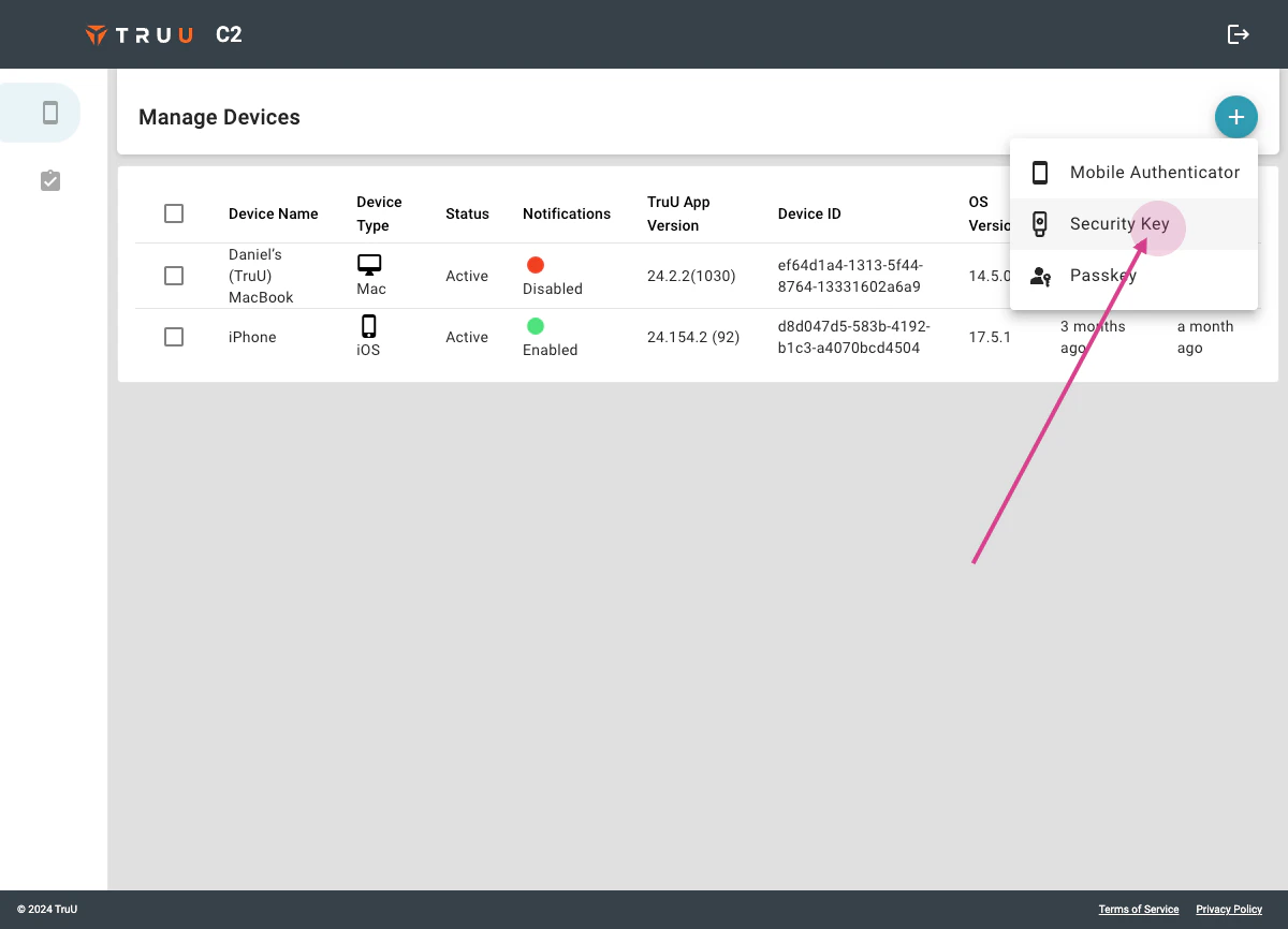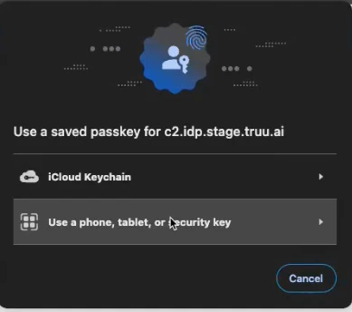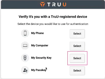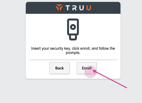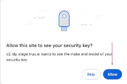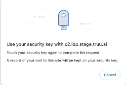 - When this prompt appears, touch your registered security key with your validated fingerprint