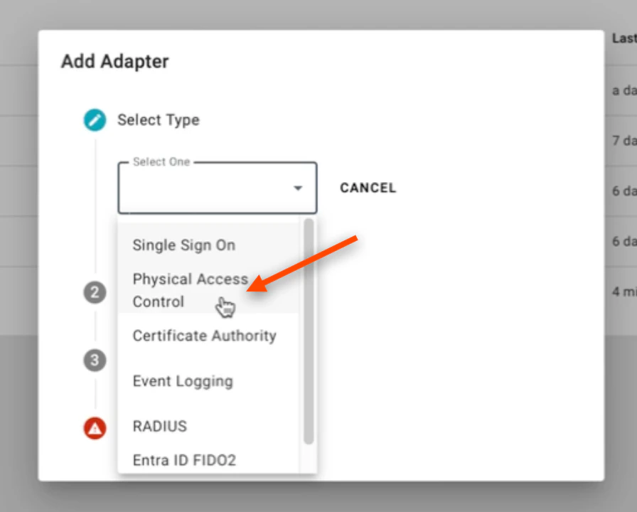- Select Physical Access Control on the ensuing dropdown menu