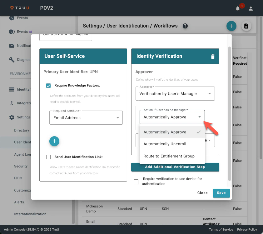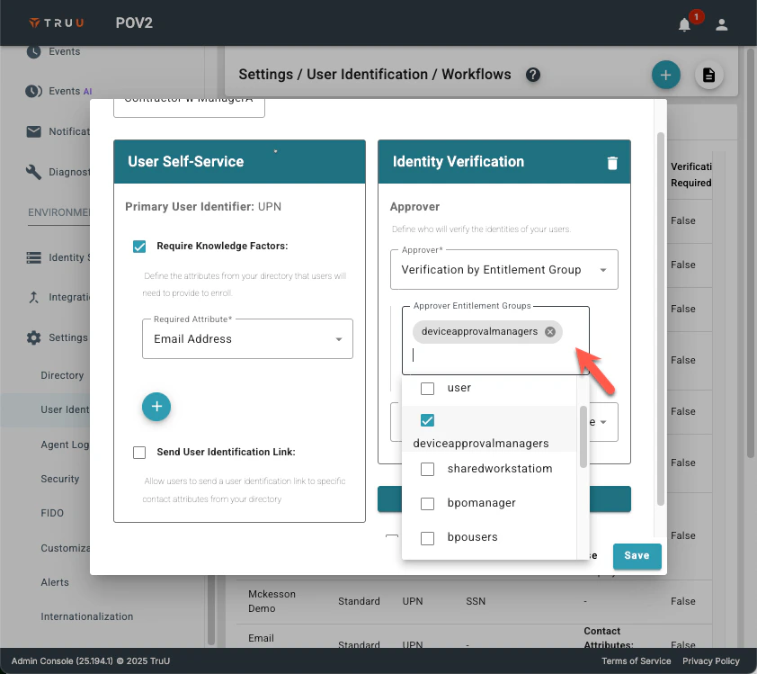 | Verification by Entitlement Group | A designated entitlement group is created in TruU. Members of this group are responsible for approving device verification requests. | When you want a specific set of managers or approvers (not tied to user directory) to review and approve new user device enrollments. |