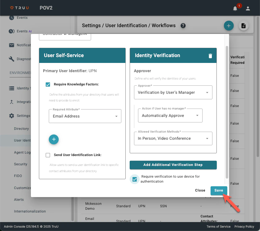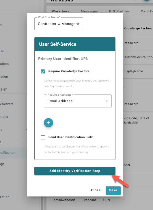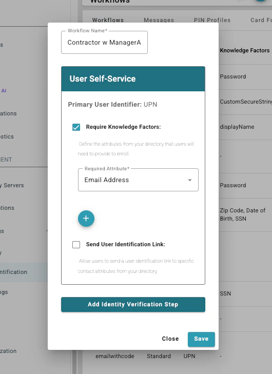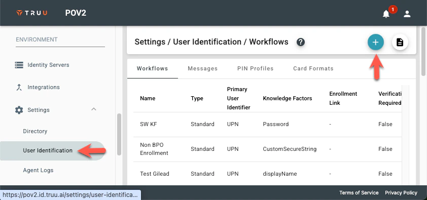 - Go to User Identification and Click Add Identity Verification Workflow on top right