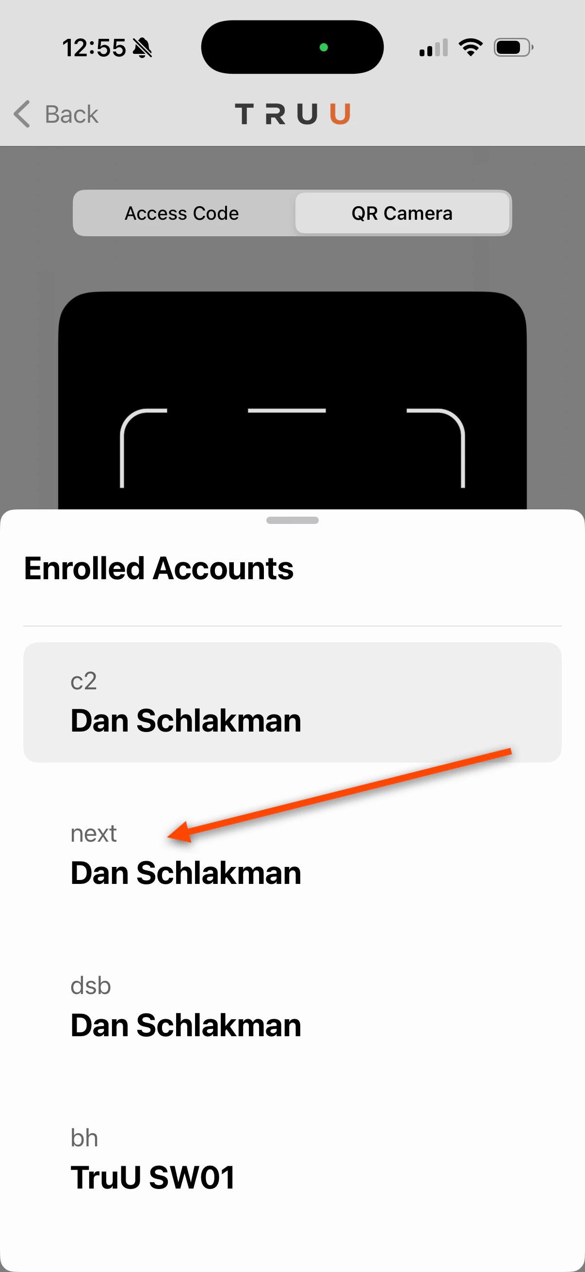 Option 1: Switch through the Access Code & QR Camera Tab