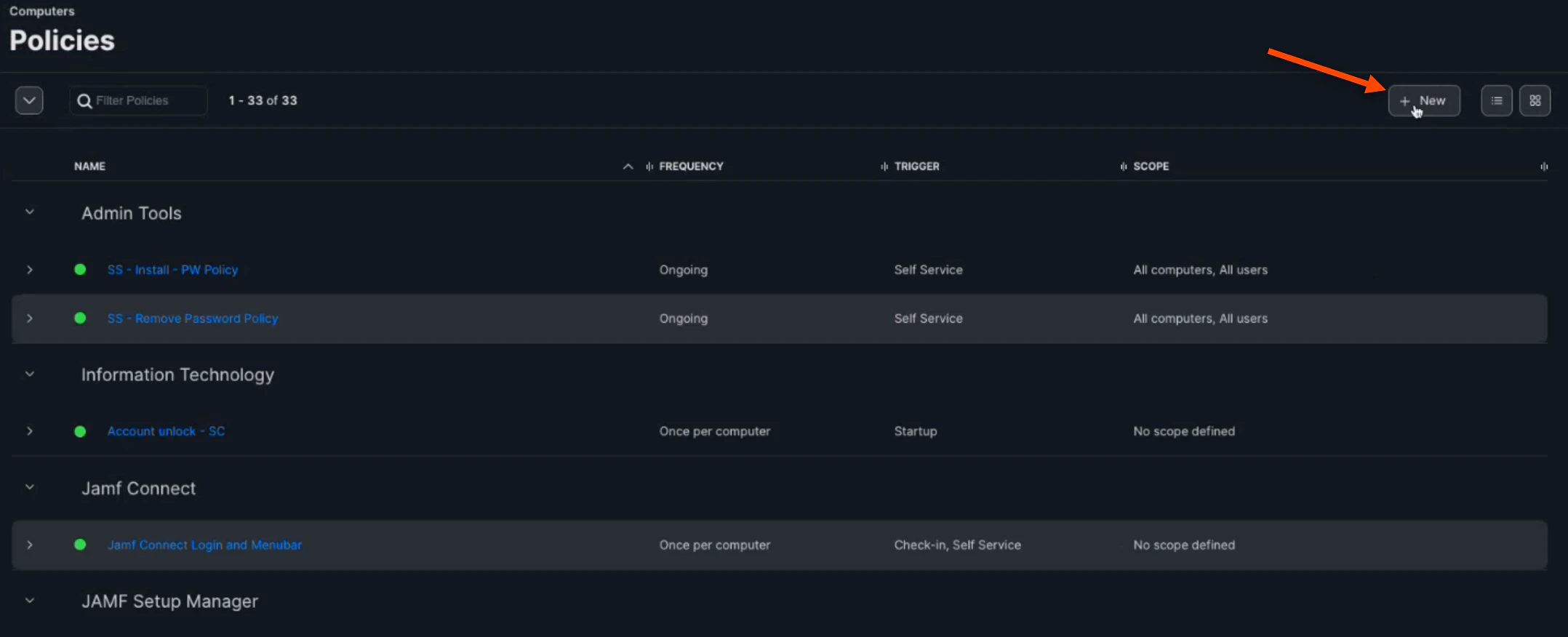 Navigate to the “Policies” tab and click (+) New