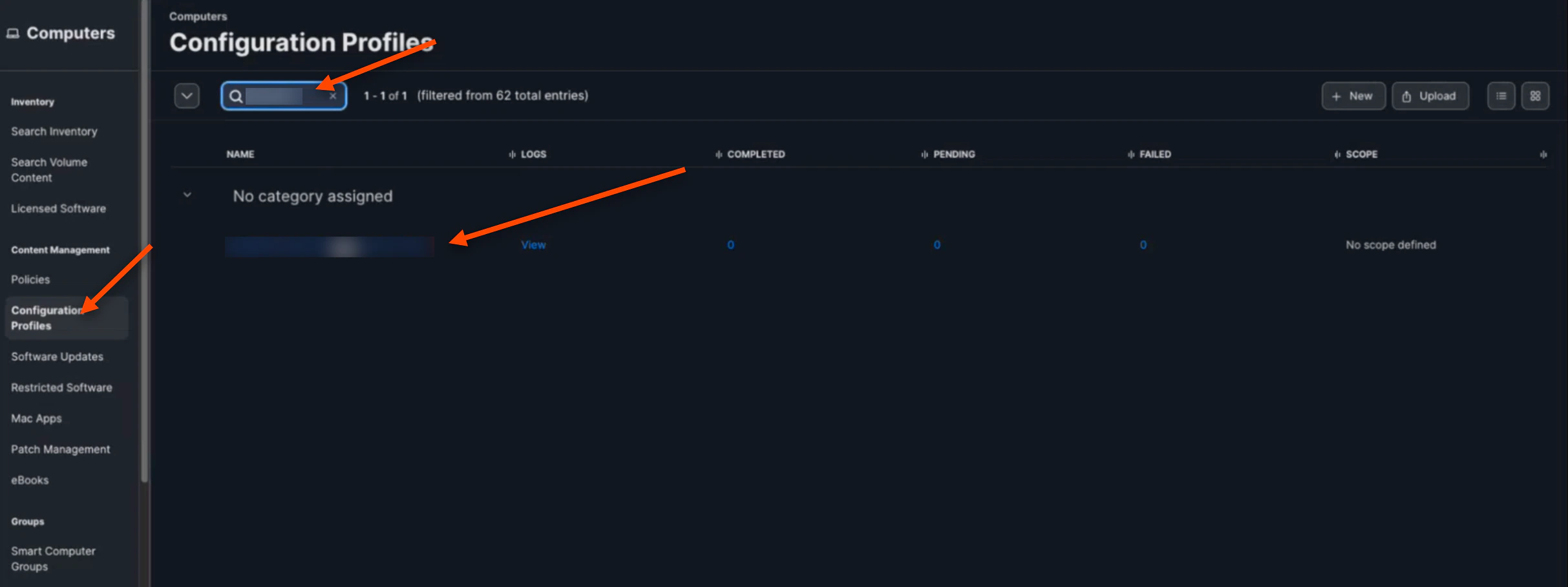 Navigate back to the “Configuration Profiles” tab. Search for your named profile and click on it