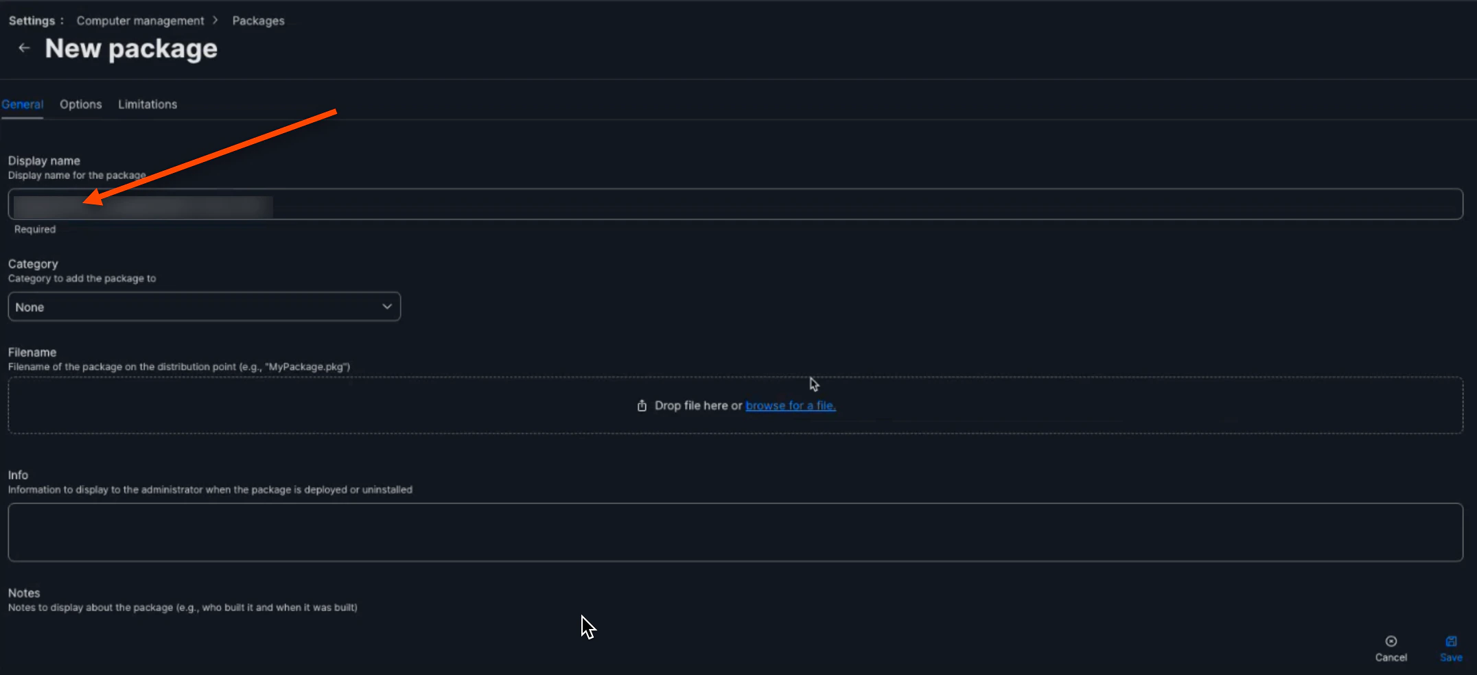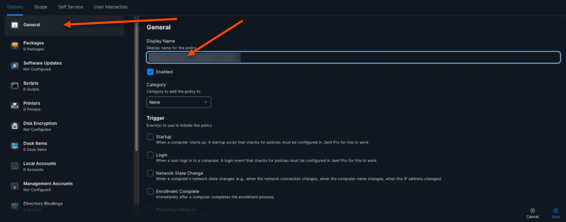 In “General”, name your policy