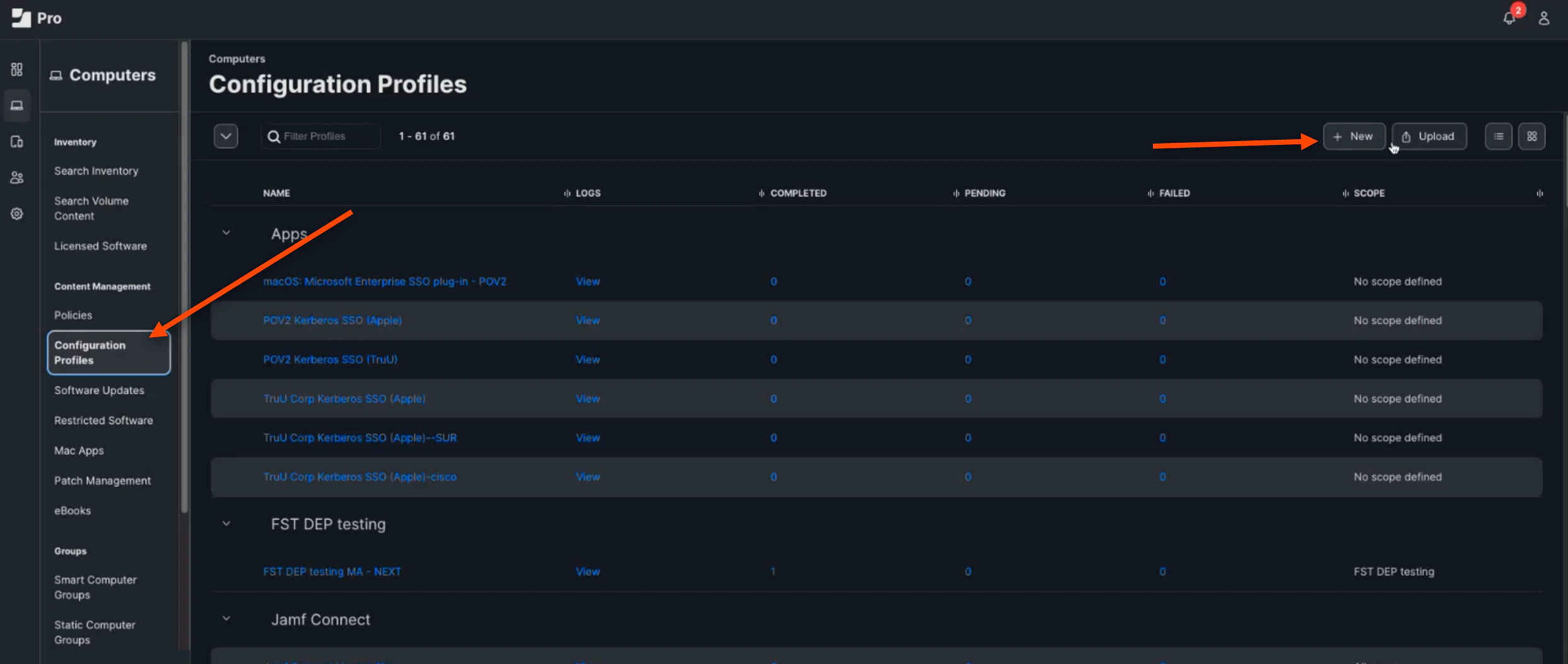 Next, Click Configuration Profiles. Then, Click (+) New