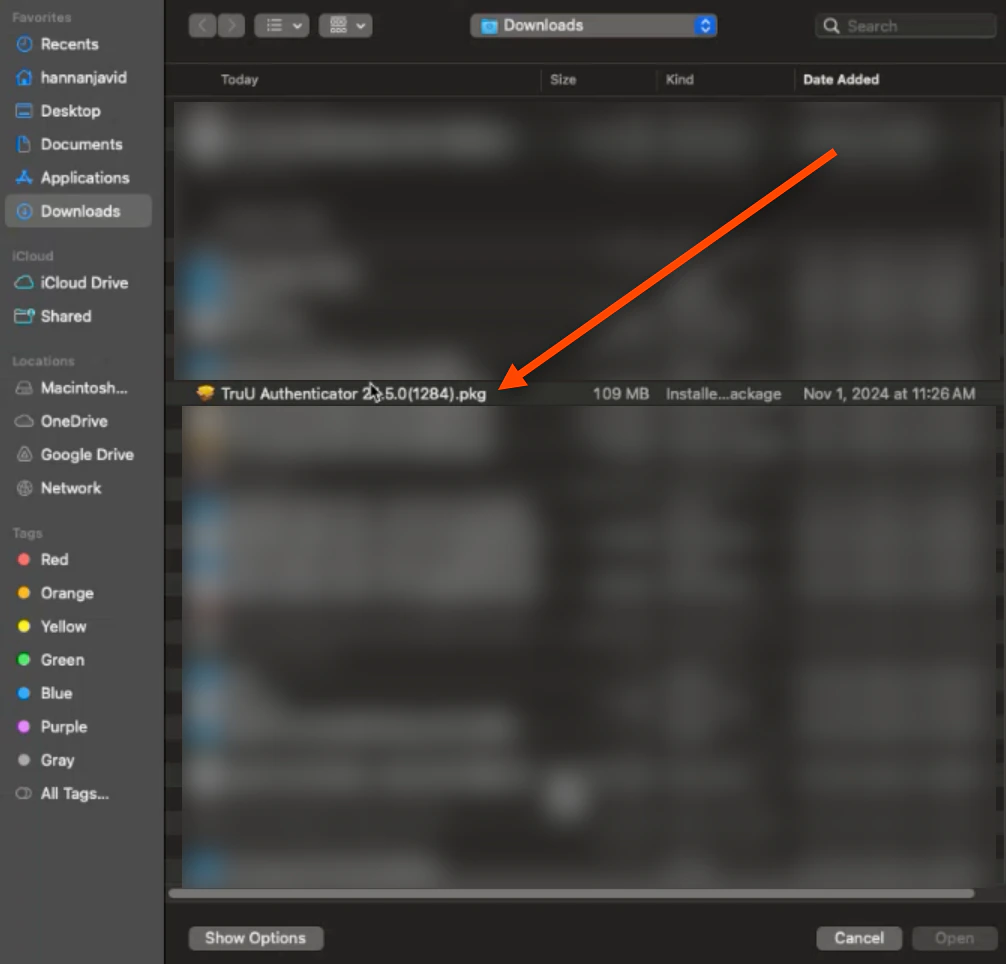 Select the downloaded TruU Mac Authenticator package