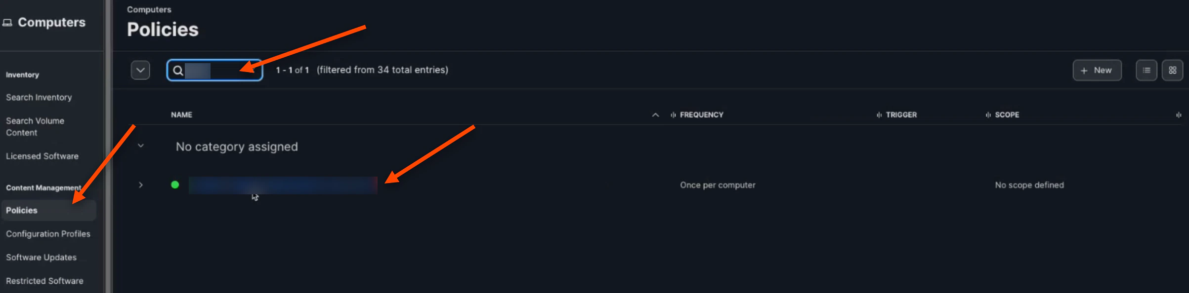 Now, navigate back to the “Policy” tab and search your created policy. Click on your policy