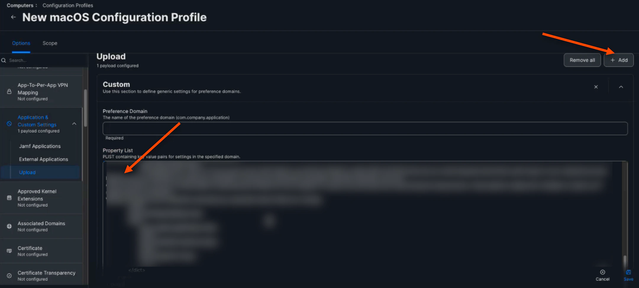 Click (+) Add. Then, copy and paste your downloaded plist from the TruU Mac Authenticator into the Property List Box below